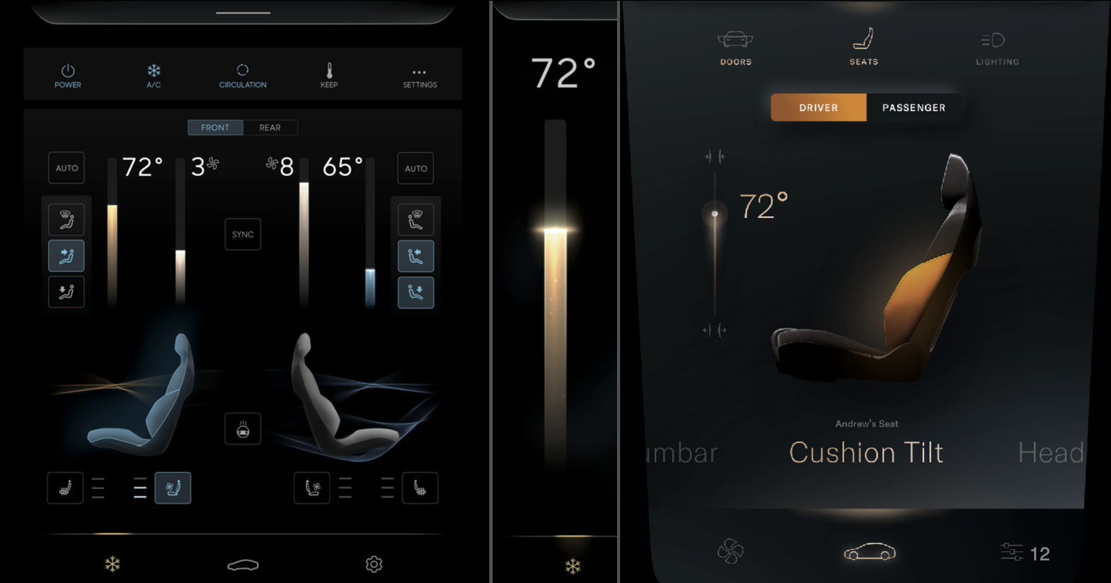 Alongside guiding my team through the design journey, I spearheaded the development of a scalable UX/UI framework that enabled us to validate our design work using a seating buck. Despite not having any legacy to work with, this setup allowed us to simulate the driving experience and refine screen interactions based on user feedback.